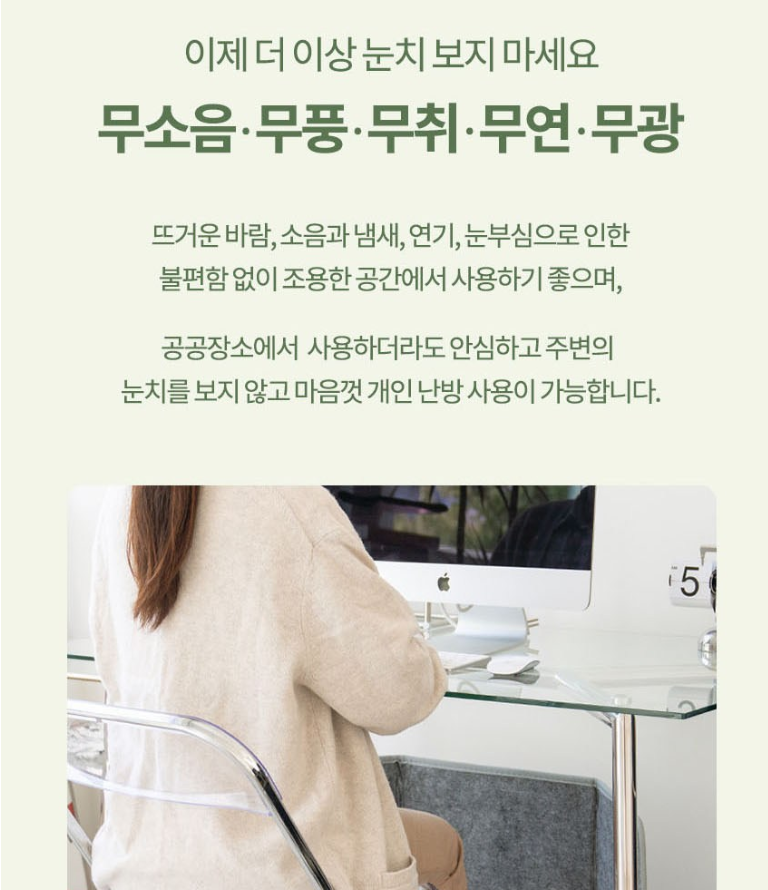 내 자리만 따뜻하게 만들 수 있다는 게 이 제품의 진짜 매력입니다.