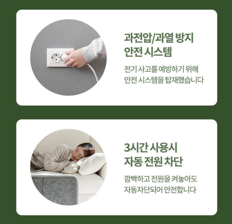 🔥 9. 안전성 — 넘어져도, 오래 켜놔도 안심