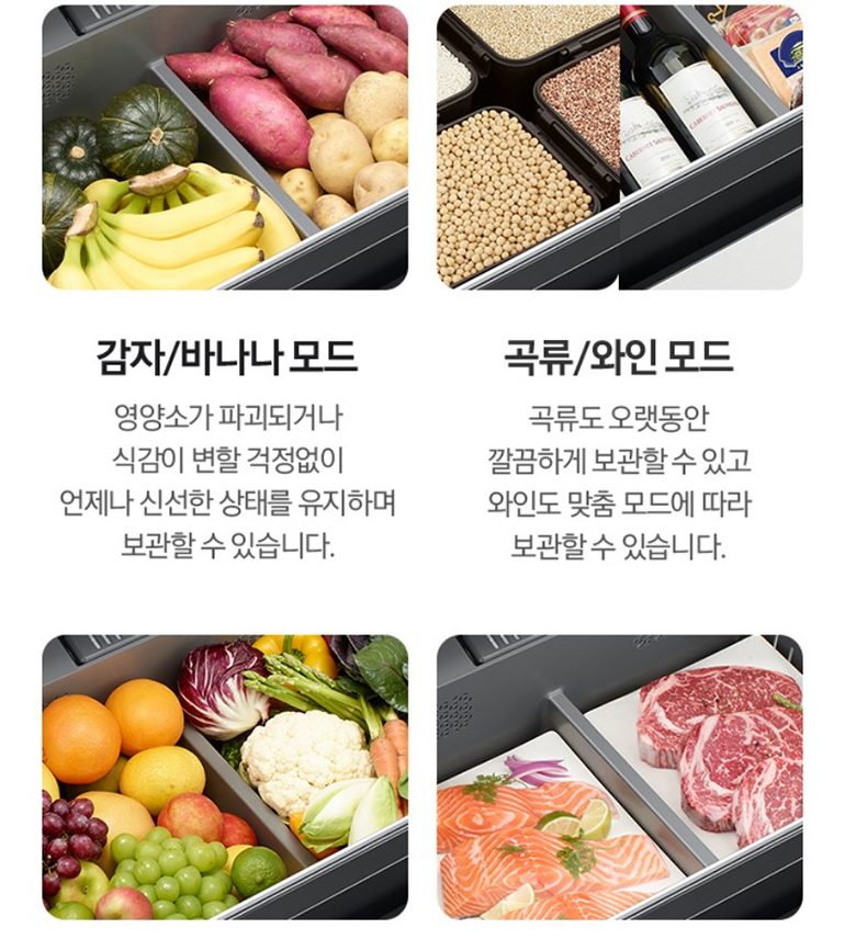 - 보관 모드: 숙성이 멈춘 상태로 아삭한 식감을 오래 유지