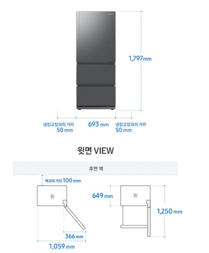 - ✅ 독립 냉각 3도어 구조로 냄새 섞임 없이 다양한 식품 보관 가능