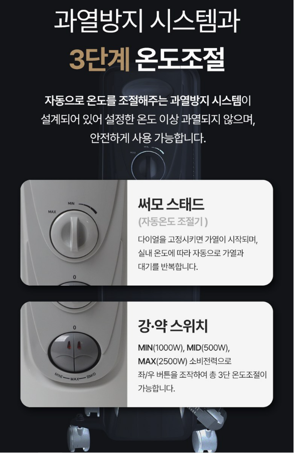 🌡️ 3단 온도조절 다이얼 — 직관적이고 간편한 조작