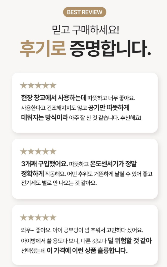 “밤새 켜놔도 따뜻하고 전기요금 부담 없어요.”